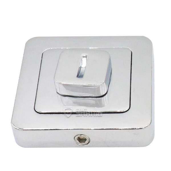 Вороток торговой марки RDA. Обычно устанавливается на деревянные двери в туалет или ванную. Может управлять ригелем или блокировать язычок, смотря какой тип замка установлено. Изготавливается из цинкового сплава. Покрытие наносится специальным методом гальваники, что обеспечивает защиту цветового оттенка от повреждений. Подбирается исключительно под конкретную модель ручки, для того чтобы сохранить соответствие между цветом и дизайном. Современный цвет - хром - прекрасно подойдет для интерьера с яркими светлыми оттенками. Такой вороток при необходимости можно открыть снаружи, достаточно использовать любой плоский предмет.