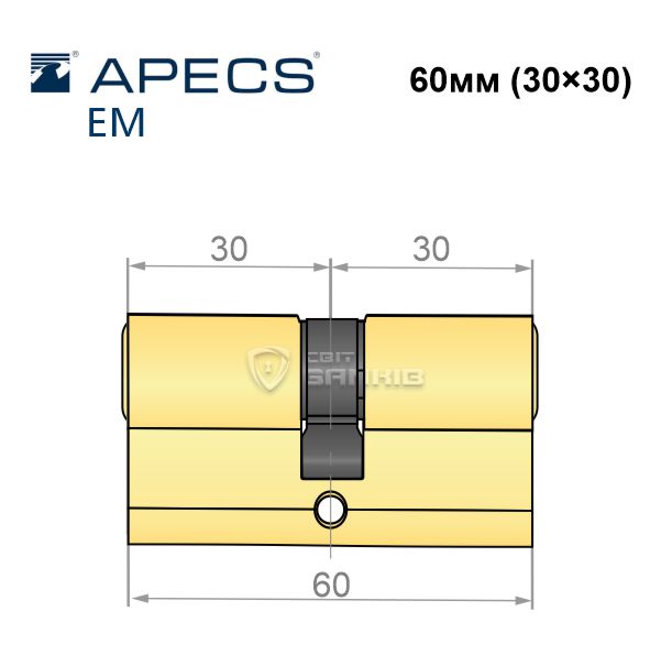 Описание Цилиндр APECS EM 60 (30*30) латунь матовая