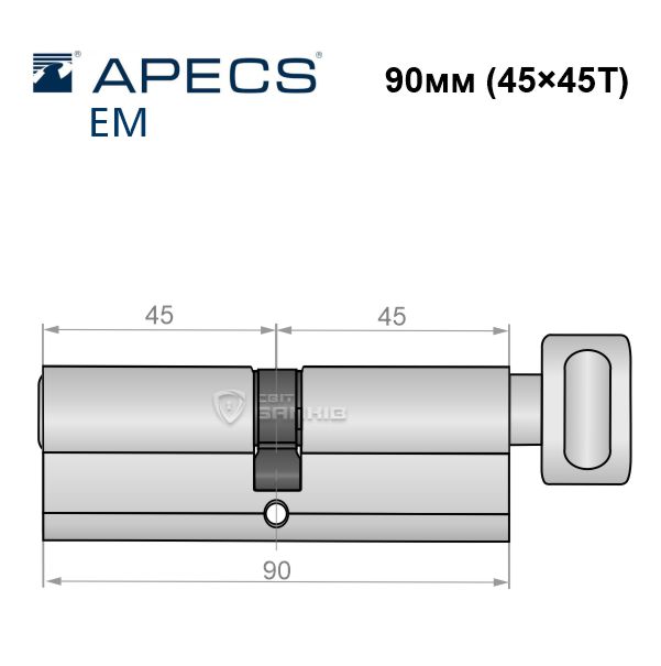 Купить цилиндр APECS EM 90T (45*45T) никель сатин в розницу и оптом можно на нашем сайте.