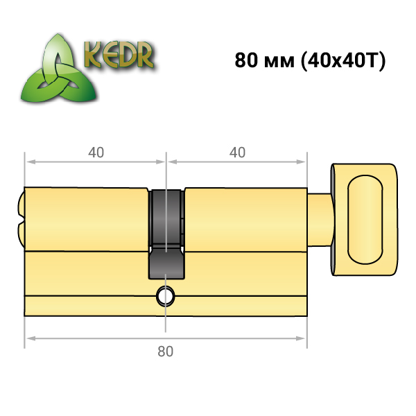 Цилиндр KEDR Brass 80T (40*40T) ZCG полированная латунь