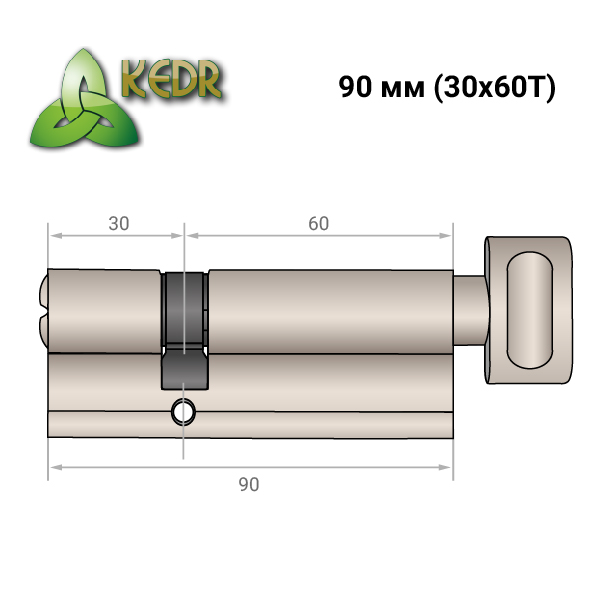 Описание Цилиндр KEDR Brass 90T (30*60T) ZCN никель