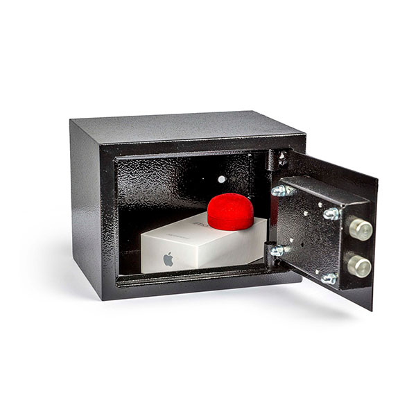 Общие размеры составляют 170 мм по высоте, 230 мм по ширине и 170 мм по глубине. Благодаря компактности сейф можно легко перемещать и перевозить в другое место. Мы рекомендуем использовать данную модель для хранения печатей, денег, украшений, флешек, часов, небольших документов дома или в офисе.