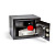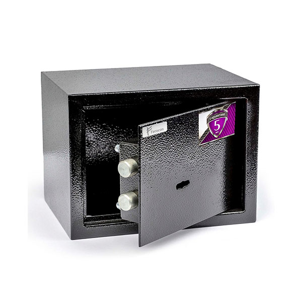 Корпус в виде сварной конструкции и двери сейфа изготовлены из стали. Их толщина составляет 1,5 мм и 2,5 мм соответственно. Сейф закрывается ключевым сувальдным замком, управляющим двумя ригелями. Для защиты от вандального взлома петли имеют внутреннее исполнение. В черном цвете он отлично дополнит современное помещение и не будет выделяться.