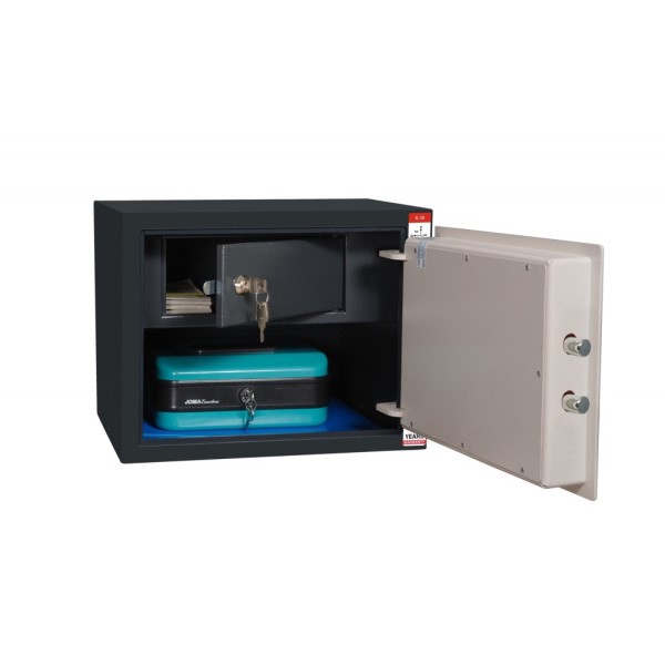 Внутреннее пространство имеет размеры: 294 мм по высоте, 374 мм по ширине и 265 мм по глубине. Полок нет, однако есть отдельный кассовый трейзер, который можно закрыть на ключ. Мы советуем использовать данную модель для хранения небольших сумм денег, документов и других ценностей.