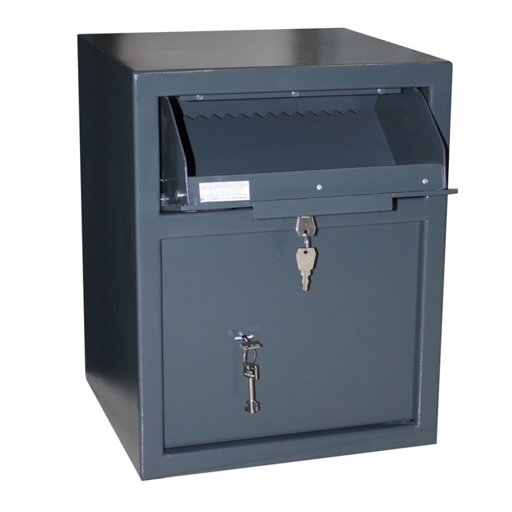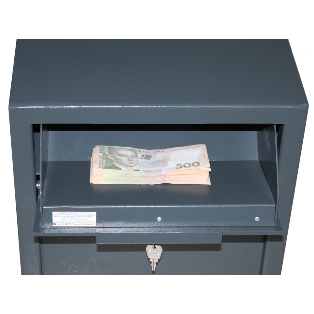 Корпус и двери сейфа изготовлены из металла толщиной 2 и 5 мм соответственно. Закрывается ключевым замком STUV. Запирание осуществляется толстыми вращающимися ригелями диаметром 25 мм. Они обеспечат практическую защиту от возможности их перепиливания. В антрацитово-сером цвете отлично дополнит любое современное помещение.