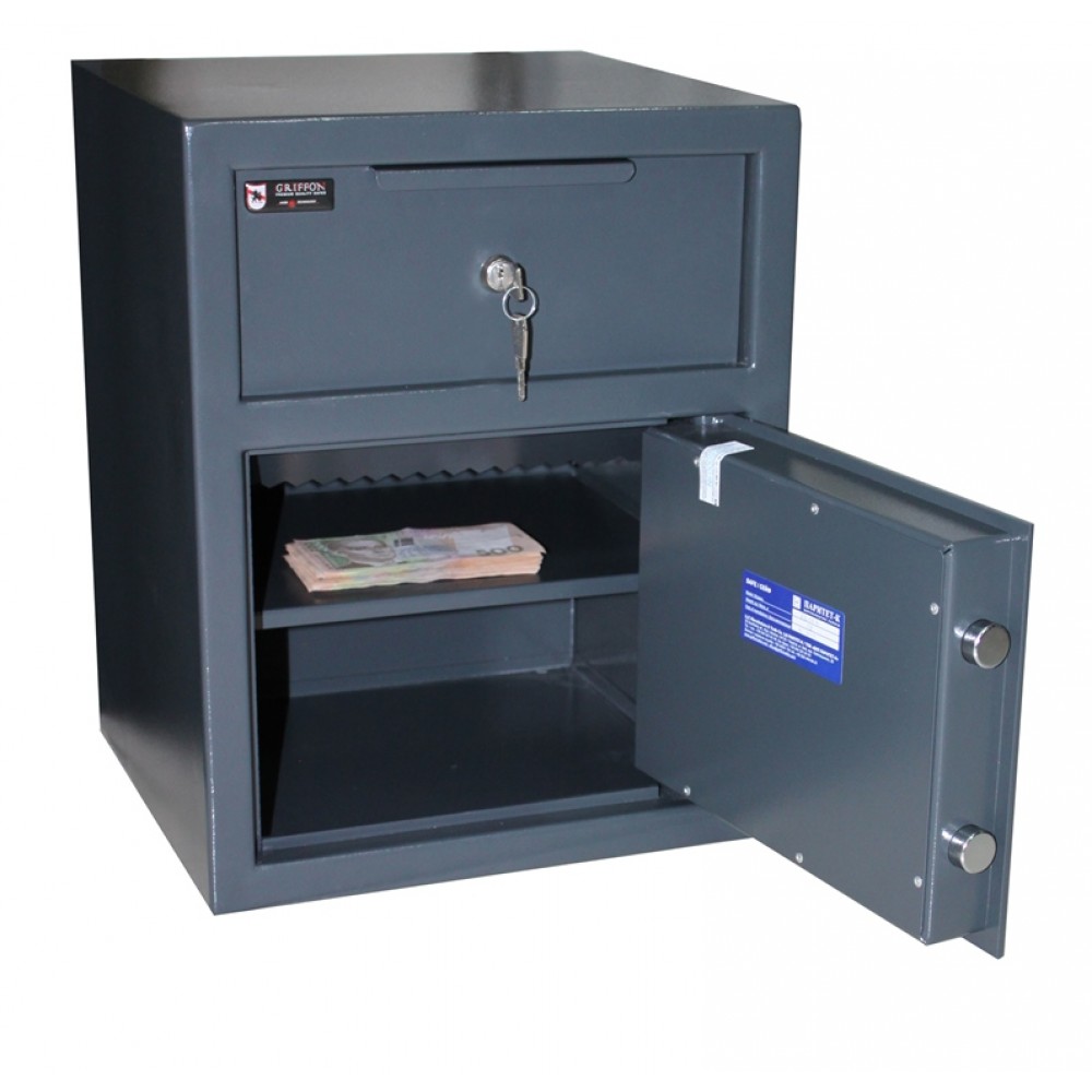 Украинский производитель ПАРИТЕТ-К является одним из лучших и самых прогрессивных в сфере проектирования и изготовления сейфов любой категории. Данная модель GRIFFON RD.48.К имеет отдел и отверстие для депонирования. Поэтому чаще всего используется в офисах, пунктах обмена валют, салонах красоты, автозаправочных станциях, магазинах, банках и тому подобное. Обладает относительно компактными размерами. Для надежности крепления предусмотрены отверстия для анкерных болтов. Это позволит закрепить сейф к полу.