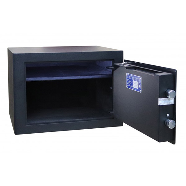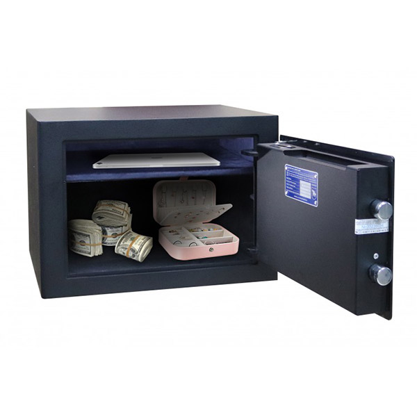 Украинский производитель ПАРИТЕТ-К является одним из лучших и самых прогрессивных в сфере проектирования и изготовления сейфов любой категории. Данная модель GRIFFON M.30.Е BLACK обладает компактными размерами и при этом достаточно вместительная для бытовых нужд. Ее без проблем можно разместить внутри мебели. Для надежности крепления предусмотрены отверстия для анкерных болтов. Это позволит закрепить сейф к полу или стене. При этом он сертифицирован по классу взломостойкости S1. Это означает, что сейф хорошо противостоит вандальному взлому.