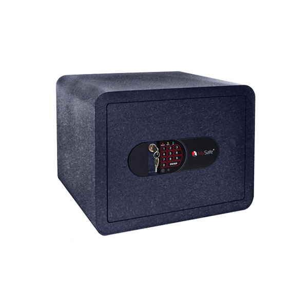 Корпус и дверь сейфа изготовлены из металла толщиной 2 и 4 мм соответственно. Закрывается электронным кодовым замком MySafe с аварийным ключом. То есть сейфом можно управлять либо вводом кодовой комбинации, либо аварийным ключом. Замыкание производится толстыми вращающимися ригелями диаметром 25 мм. Они обеспечат практическую защиту от возможности их перепиливания. Петли в форме антисрезов имеют внутреннее исполнение, поэтому их сбить совершенно невозможно. Для надежности крепления предусмотрены отверстия для анкерных болтов. Это позволит закрепить сейф к полу или стене.
