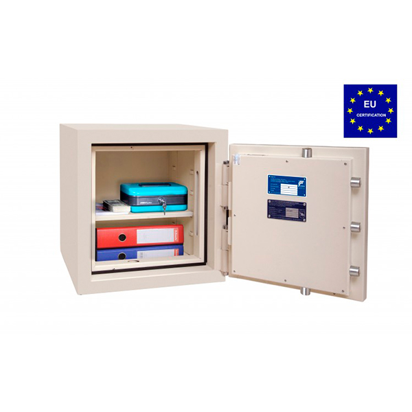 Корпус сейфа заполнен специальным фортификационным бетоном. Толщина защитного слоя составляет 55 мм. Вместе с электронным кодовым замком M-LOCKS это создаст существенную преграду и для злоумышленника. Он оснащен светодиодной подсветкой синего цвета. Запирание осуществляется ригельной системой трехстороннего действия. Толстые вращающиеся ригеля диаметром 25 мм обеспечат практическую защиту от возможности их перепиливания. Дополнительно со стороны петель является антисрезы. Удобства пользования добавляет эргономичная ручка. В кремовом цвете сейф особенно удачно впишется в современное помещение с подобными оттенками, где не будет особенно привлекать внимание.