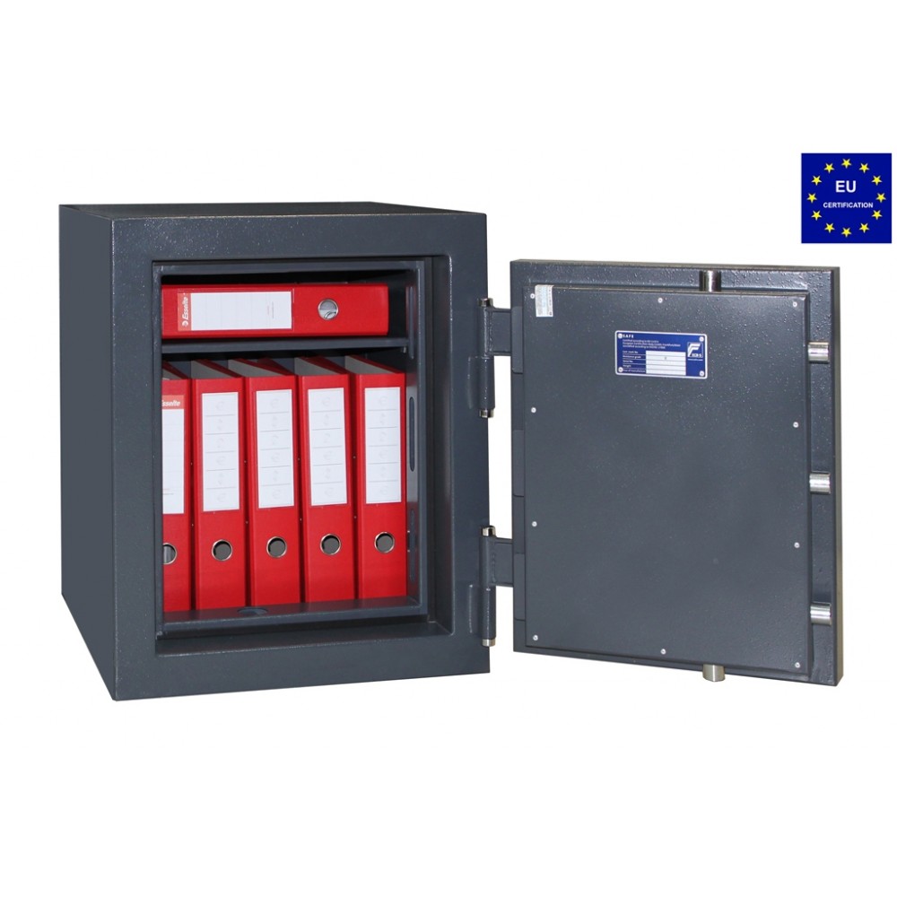 Украинский производитель ПАРИТЕТ-К является одним из лучших и самых прогрессивных в сфере проектирования и изготовления сейфов любой категории. Данная модель GRIFFON CLE.II.60 K относится к огневзломостойким. Она способна защищать ценности от взлома (II класс по EN 1143-1) и действия огня (класс LFS 30 P). Это означает, что во время пожара в течение 30 минут температура внутри сейфа не поднимется выше 170°C, чего достаточно для хранения бумажных документов. Относительно компактные размеры позволяют расположить сейф практически в любом месте в помещении. Для надежности крепления предусмотрены отверстия для анкерных болтов. Это позволит закрепить его к полу. Внутреннее пространство имеет размеры: 490 мм по высоте, 390 мм по ширине и 330 мм по глубине. Есть полка, которая позволит разделить, например, документы и деньги. Ее можно легко снять, если будет необходимость хранить объемные предметы. Пространство внутри сейфа позволяет легко поместить обычные папки с документами формата А4 в любом положении. Корпус сейфа заполнен специальным фортификационным бетоном. Толщина защитного слоя составляет 55 мм. Вместе с ключевым сейфовым замком STUV это создаст существенную преграду и для злоумышленника. Запирание осуществляется ригельной системой трехстороннего действия. Толстые вращающиеся ригеля диаметром 25 мм обеспечат практическую защиту от возможности их перепиливания. Дополнительно со стороны петель является антисрезы. Удобства пользования добавляет эргономичная ручка. В темно-сером цвете с эффектом молотковой эмали сейф отлично дополнит любое современное здание да не будет привлекать излишнее внимание. В комплекте идут ключи, инструкция по эксплуатации и паспорт с серийным номером. Гарантия на конструкцию сейфа составляет 5 лет, на замок 1 год.