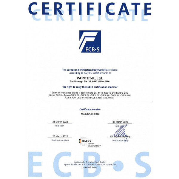 | Класс взломостойкости | II класс (Европейская сертификация) | |