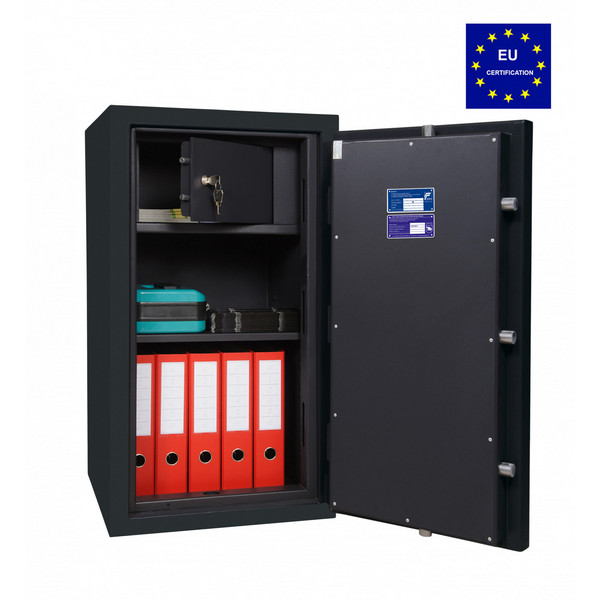 Украинский производитель ПАРИТЕТ-К является одним из лучших и самых прогрессивных в сфере проектирования и изготовления сейфов любой категории. Данная модель GRIFFON CLE.II.90 E относится к огневзломостойким. Она способна защищать ценности от взлома (II класс по EN 1143-1) и действия огня (класс LFS 30 P). Это означает, что во время пожара в течение 30 минут температура внутри сейфа не поднимется выше 170°C, чего достаточно для хранения бумажных документов. Для надежности крепления предусмотрены отверстия для анкерных болтов. Это позволит закрепить его к полу.