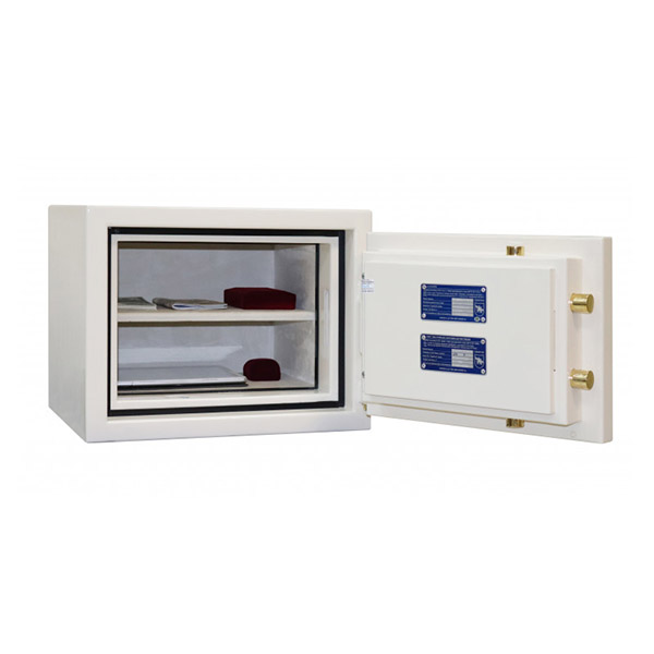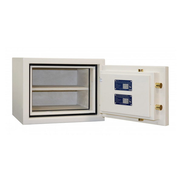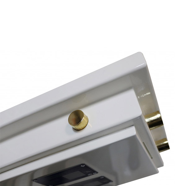 Корпус сейфа заполнен специальным огнестойким бетоном. В конструкции используется мелкопористый пенобетон. Он состоит из цемента, воды, песка и специальных пенных добавок, которые образуют внутри материала много мелких воздушных пор. Благодаря порам пенобетон обладает низкой теплопроводностью и хорошими теплоизоляционными свойствами. По своей структуре очень легкий, но при этом он достаточно крепкий и долговечный. Толщина защитного слоя составляет 55 мм. Вместе с электронным кодовым замком M-LOCKS это создаст существенную преграду и для злоумышленника. Запирание осуществляется ригельной системой трехстороннего действия. Толстые вращающиеся ригеля диаметром 25 мм обеспечат практическую защиту от возможности их перепиливания. Дополнительно со стороны петель имеются антисрезы. Удобства пользования добавляет эргономичная ручка. В кремовом цвете сейф отлично дополнит любое современное помещение. Замок в золотом кольоры придаст изысканной элегантности.