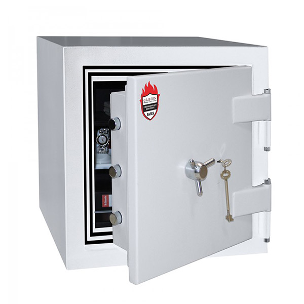 Корпус и двери сейфа заполнены специальным огнестойким бетоном. Толщина защитного слоя составляет 72 мм. Вместе с ключевым сейфовым замком STUV это создаст существенную преграду для злоумышленника. Запирание осуществляется ригельной системой четырехстороннего действия. Толстые вращающиеся ригеля диаметром 25 мм обеспечат практическую защиту от возможности их перепиливания. В белом цвете сейф отлично дополнит любое современное помещение и не будет выделяться.