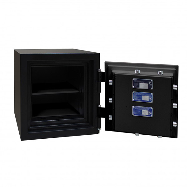 Корпус и двери сейфа заполнены специальным огнестойким бетоном. Толщина защитного слоя составляет 72 мм. Вместе с ключевым сейфовым замком STUV это создаст существенную преграду для злоумышленника. Запирание осуществляется ригельной системой четырехстороннего действия. Толстые вращающиеся ригеля диаметром 25 мм обеспечат практическую защиту от возможности их перепиливания. В черном цвете сейф отлично дополнит любое современное помещение и не будет выделяться.