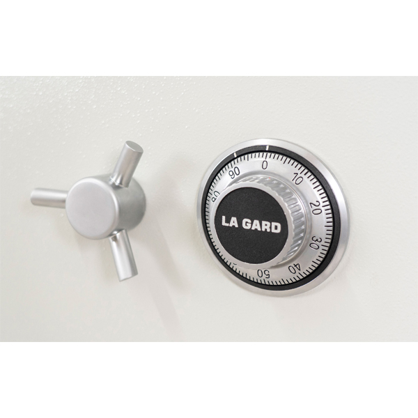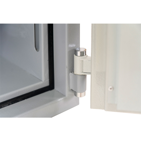 Корпус сейфа заполнен специальным огнестойким бетоном. В конструкции используется мелкопористый пенобетон. Он состоит из цемента, воды, песка и специальных пенных добавок, которые образуют внутри материала много мелких воздушных пор. Благодаря порам пенобетон обладает низкой теплопроводностью и хорошими теплоизоляционными свойствами. По своей структуре очень легкий, но при этом он достаточно крепкий и долговечный. Толщина защитного слоя составляет 55 мм. Вместе с механическим кодовым замком LaGard это создаст существенную преграду и для злоумышленника. Запирание осуществляется ригельной системой трехстороннего действия. Толстые вращающиеся ригеля диаметром 25 мм обеспечат практическую защиту от возможности их перепиливания. Дополнительно со стороны петель имеются антисрезы. Удобства пользования добавляет эргономичная ручка. В сером цвете сейф отлично дополнит любое современное здание да не будет привлекать излишнее внимание.