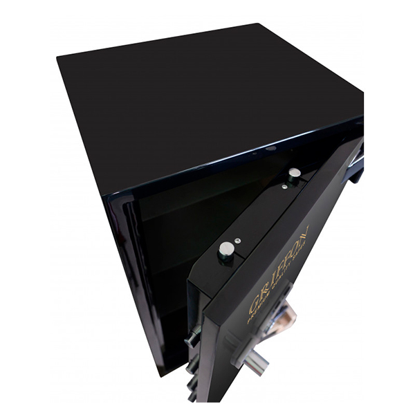 Внутренний корпус изготовлен из нержавеющей стали. Его стенки заполнены фортификационным бетоном толщиной 50 мм. Стальные легированные пластины защитят от высверливания и выбивания замков и ригелей. Вместе с электронным кодовым замком Kaba Combi это создаст существенную преграду для злоумышленника. Запирание осуществляется ригельной системой трехстороннего действия. Толстые вращающиеся ригеля диаметром 25 мм обеспечат практическую защиту от возможности их перепиливания. Дополнительно со стороны петель имеются антисрезы. Удобства пользования добавляет эргономичная ручка. Фишка сейфа - новый черный глянцевый цвет. Он отлично дополнит любое современное помещение.