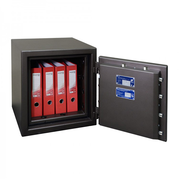 Внутренний корпус изготовлен из нержавеющей стали. Его стенки заполнены фортификационным бетоном толщиной 50 мм. Стальные легированные пластины защитят от высверливания и выбивания замков и ригелей. Вместе с электронным кодовым замком STUV SWINGLOX или M-LOCKS это создаст существенную преграду и для злоумышленника. Запирание осуществляется ригельной системой трехстороннего действия. Толстые вращающиеся ригеля диаметром 25 мм обеспечат практическую защиту от возможности их перепиливания. Дополнительно со стороны петель имеются антисрезы. Удобства пользования добавляет эргономичная ручка. В коричневом цвете сейф отлично дополнит любое современное здание да не будет привлекать излишнее внимание.