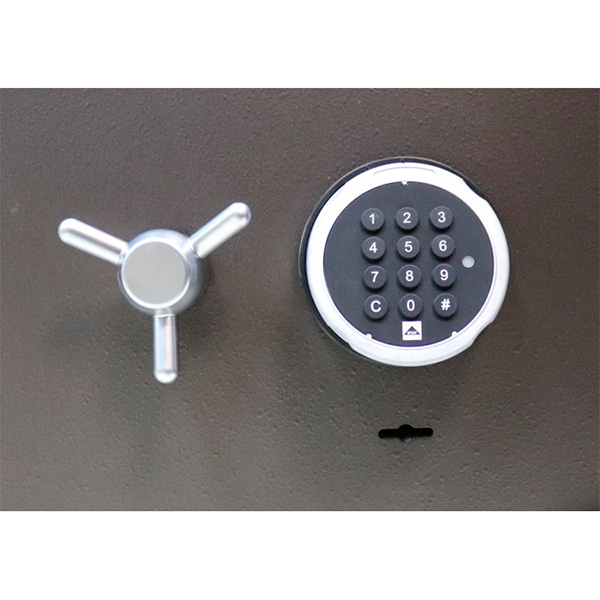 Такой тип открывания сейфа является достаточно надежным. Для того, чтобы его открыть нужно правильно ввести кодовую комбинацию с помощью прокрутки специальной круглой ручки. Подобные механические кодовые замки не требуют особого ухода и являются надежными в использовании.