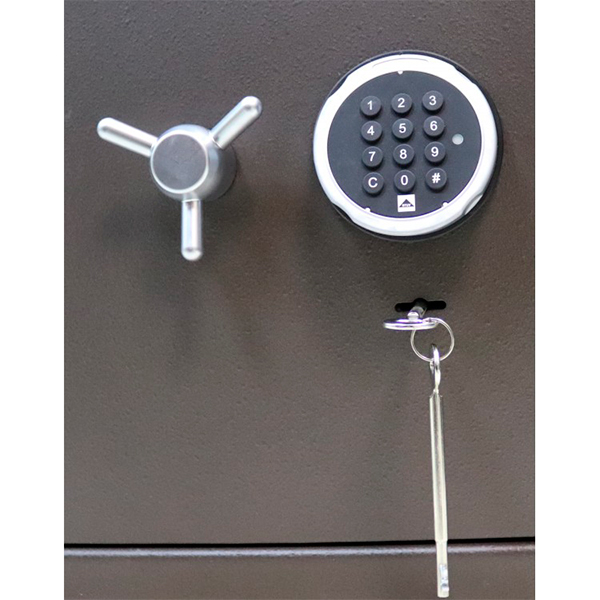 Данный вариант открывания представляет собой комплекс первых двух способов - открытие происходит только после проворачивания комплектного ключа и ввода правильной комбинации на кодонабирателе. Соответственно это дает куда большую и надежную защиту от возможности несанкционированного открывания. В некоторых моделях ключ выступает в роли аварийного и применяется только для открывания в том случае, если Вы забыли код к электронному замку или не хотите его вводить.