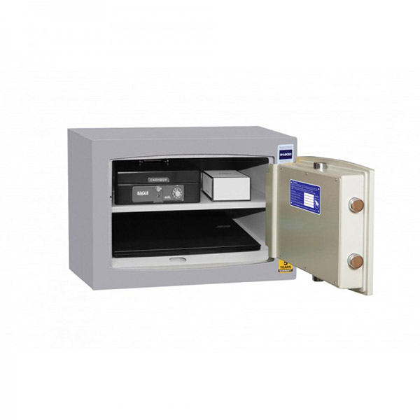 Стенки корпуса данного сейфа заполнены фортификационным бетоном толщиной 25 мм. Двери изготовлены из металла толщиной 14 мм. Вместе с электронным кодовым замком M-LOCKS это создаст существенную преграду и для злоумышленника. Запирание осуществляется ригельной системой трехстороннего действия. Толстые вращающиеся ригеля диаметром 25 мм обеспечат практическую защиту от возможности их перепиливание. В сером цвете отлично дополнит любое современное помещение.
