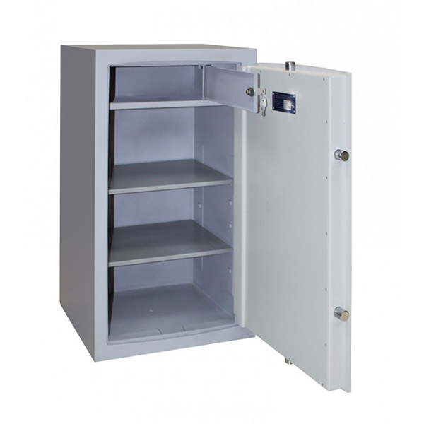 Стенки корпуса данного сейфа заполнены фортификационным бетоном толщиной 25 мм. Двери изготовлены из металла толщиной 14 мм. Вместе с электронным сейфовым замком M-LOCKS это создаст существенную преграду и для злоумышленника. Запирание осуществляется ригельной системой трехстороннего действия. Толстые вращающиеся ригеля диаметром 25 мм обеспечат практическую защиту от возможности их перепиливание. В сером цвете отлично дополнит любое современное помещение.