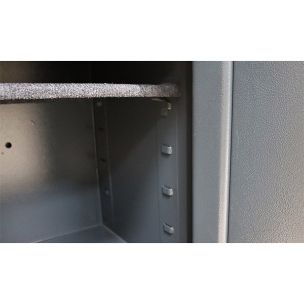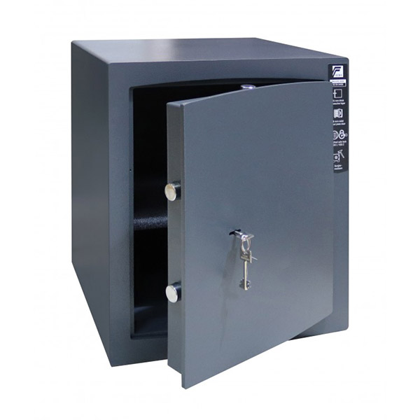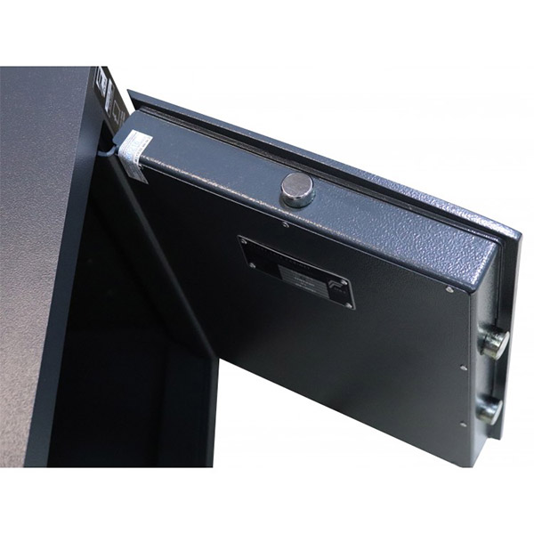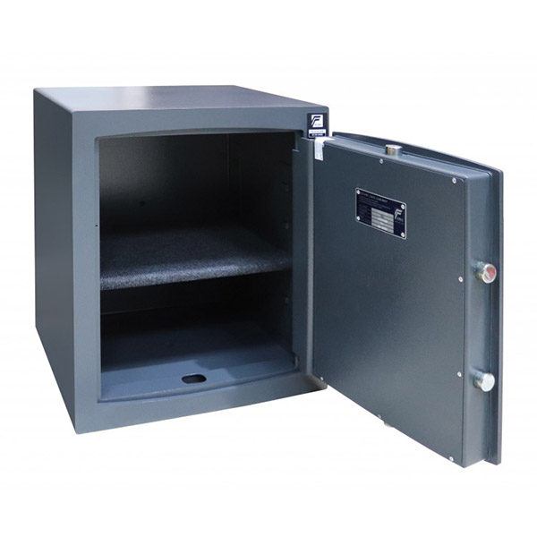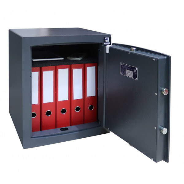 Стенки корпуса данного сейфа состоят из двух металлических стенок без заполнения толщиной 24,5 мм. Двери изготовлены из металла толщиной 12 мм. Вместе с ключевым сейфовым замком STUV это создаст существенную преграду для злоумышленника. Запирание осуществляется ригельной системой трехстороннего действия. Толстые вращающиеся ригеля диаметром 25 мм обеспечат практическую защиту от возможности их перепиливания. В сером цвете отлично дополнит любое современное помещение.