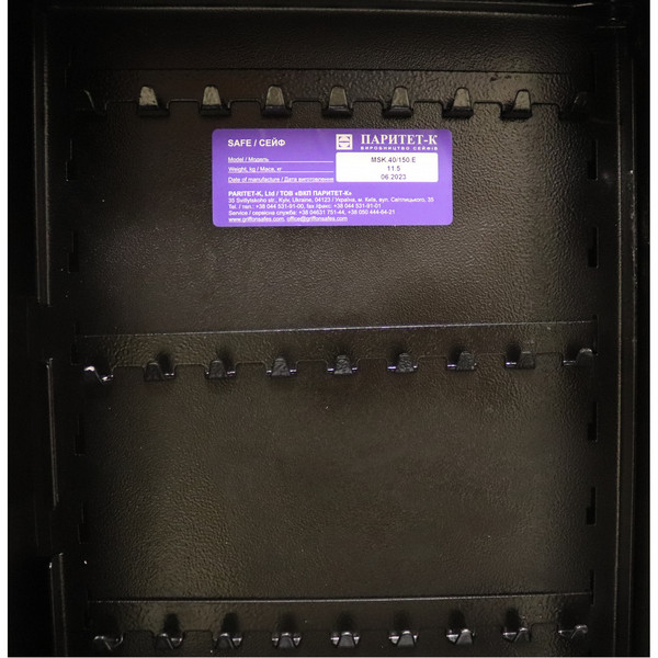 Украинский производитель ПАРИТЕТ-К является одним из лучших и самых прогрессивных в сфере проектирования и изготовления сейфов любой категории. Данная модель GRIFFON MSK.40.E является ключницей. Основное назначение - надежное и безопасное хранение ключей. Обычно используется в офисах, гостиницах, салонах красоты, спортивных комплексах, магазинах, банках, учебных заведениях и даже в частных домах. Относительно компактные размеры позволяют расположить такой сейф практически в любом месте в помещении. Для надежности крепления снизу предусмотрены отверстия для крепления к стене и фигурные отверстия для возможности его установить в подвешенном состоянии.
