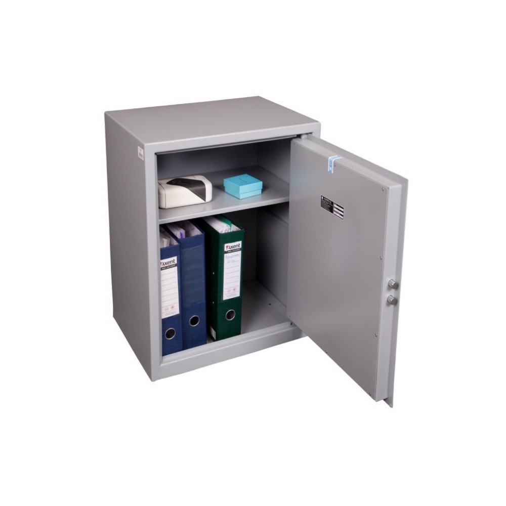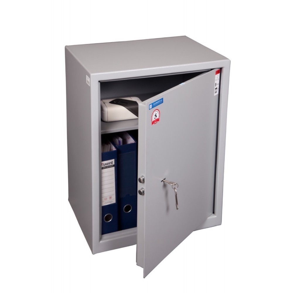 Корпус и двери сейфа изготовлены из металла толщиной 2 и 3 мм соответственно. Вместе с ключевым сувальдным замком это создаст препятствие для злоумышленника. Запирание осуществляется толстыми вращающимися ригелями диаметром 16 мм. Они обеспечат практическую защиту от возможности их перепиливания. В сером цвете отлично дополнит любое современное помещение.
