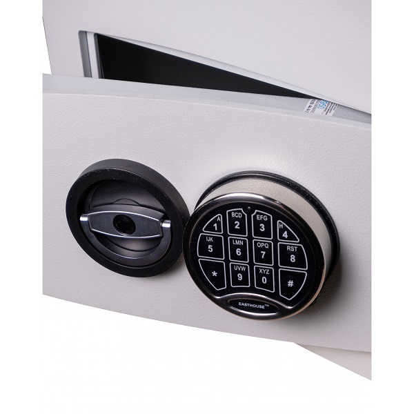 Корпус и дверь сейфа изготовлены из прочной стали толщиной 4 и 8 мм соответственно. Закрывается электрическим сейфовым замком Easthouse. Замыкание производится толстыми вращающимися ригелями диаметром 25 мм. Они обеспечат практическую защиту от возможности их перепиливания. В сером цвете отлично дополнит любое современное помещение.
