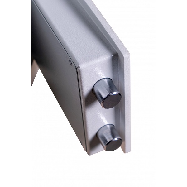 Корпус и двери сейфа изготовлены из прочной стали толщиной 4 и 8 мм соответственно. Закрывается ключевым замком STUV. Замыкание производится толстыми вращающимися ригелями диаметром 25 мм. Они обеспечат практическую защиту от возможности их перепиливания. В сером цвете отлично дополнит любое современное помещение.