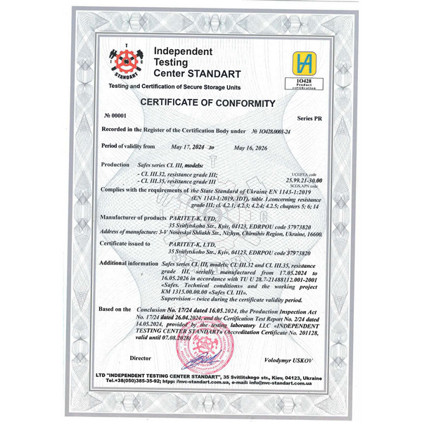 Объединив стиль и бескомпромиссную безопасность он станет идеальным выбором для тех, кто ценит не только высокий уровень защиты, но и эстетичность в каждой детали. В комплекте следуют инструкция по эксплуатации и паспорт с серийным номером. Гарантия на конструкцию сейфа составляет 5 лет на замок 1 год.