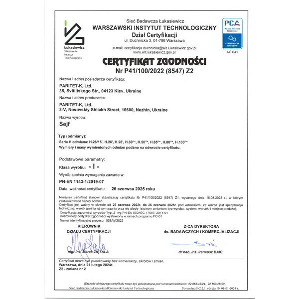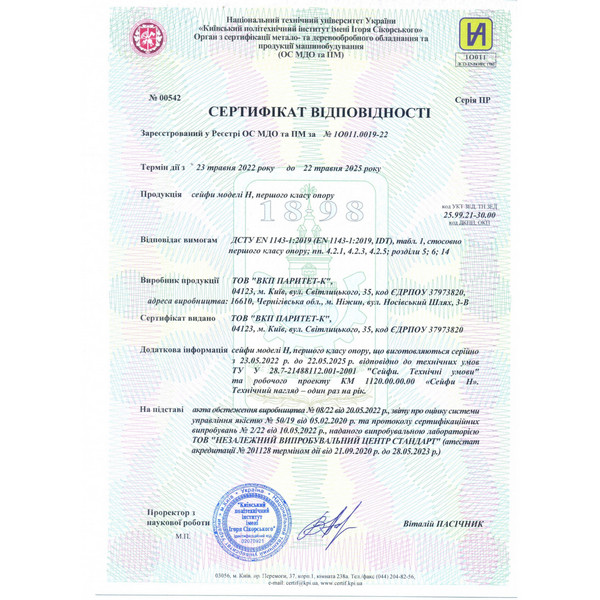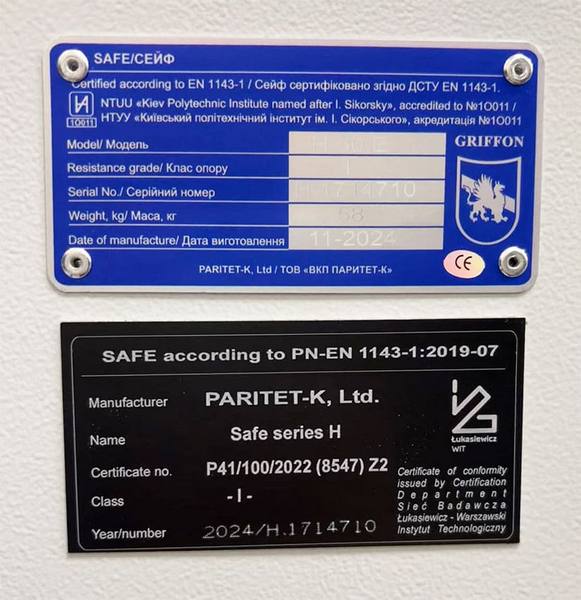 В комплекте следуют инструкция по эксплуатации и паспорт с серийным номером. Гарантия на конструкцию сейфа составляет 5 лет на замок 1 год.