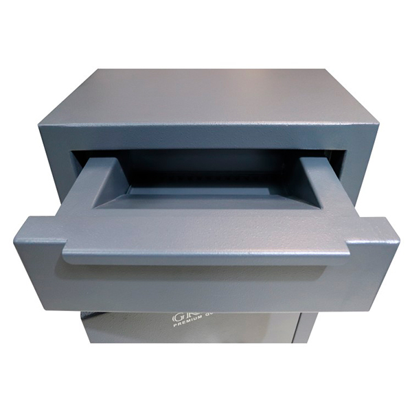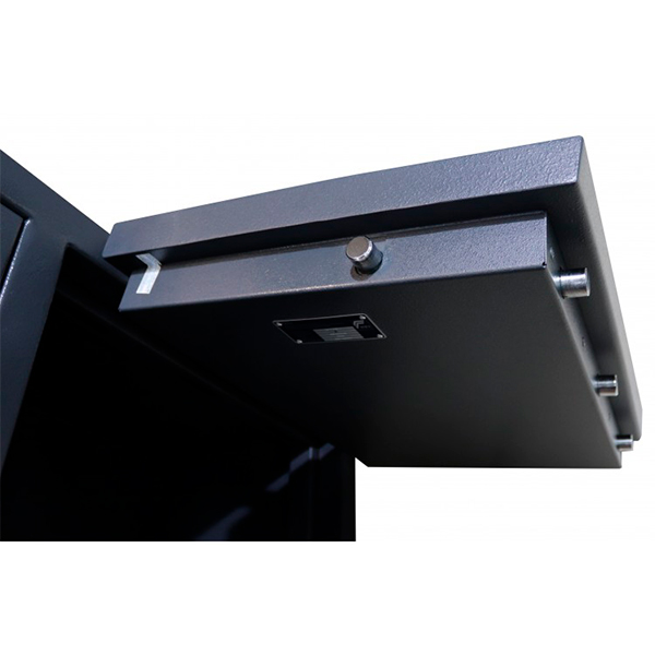Корпус и двери сейфа имеют специально разработанный защитный слой толщиной 55 мм. Закрывается ключевым замком STUV. Запирание осуществляется толстыми вращающимися ригелями диаметром 25 мм. Они обеспечат практическую защиту от возможности их перепиливания. В антрацитово-сером цвете отлично дополнит любое современное помещение.