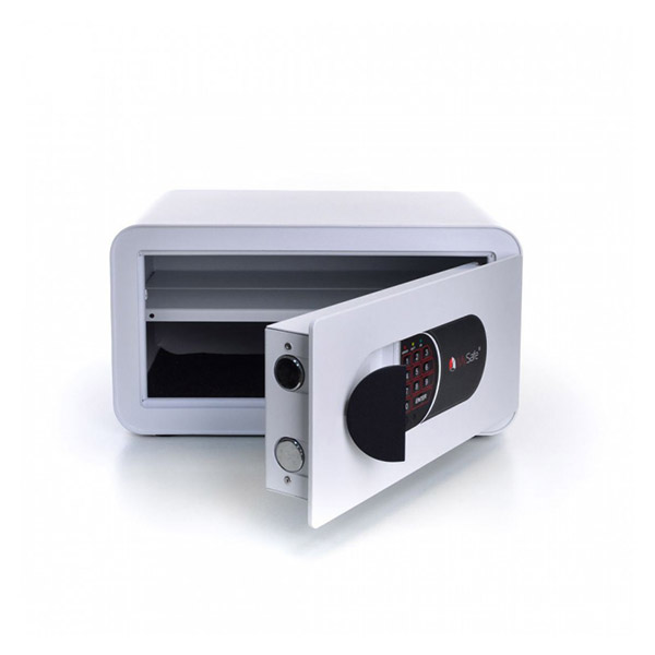 Корпус и двери сейфа изготовлены из металла толщиной 2 и 4 мм соответственно. Закрывается электронным кодовым замком MySafe. Запирание осуществляется толстыми вращающимися ригелями диаметром 25 мм. Они обеспечат практическую защиту от возможности их перепиливания. Петли в форме антисрезов имеют внутреннее исполнение, поэтому их сбить совершенно невозможно. В белом цвете отлично дополнит любое современное помещение.