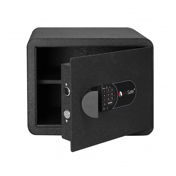 Корпус и двери сейфа изготовлены из металла толщиной 2 и 4 мм соответственно. Закрывается электронным кодовым замком MySafe. Запирание осуществляется толстыми вращающимися ригелями диаметром 25 мм. Они обеспечат практическую защиту от возможности их перепиливания. Петли в форме антисрезов имеют внутреннее исполнение, поэтому их сбить совершенно невозможно. В черном цвете отлично дополнит любое современное помещение.