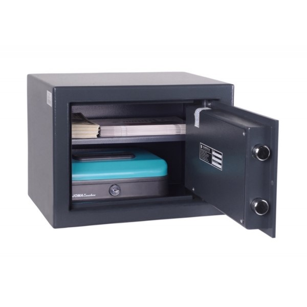 Корпус и двери сейфа изготовлены из металла толщиной 2 и 5 мм соответственно. Закрывается ключевым сейфовым замком Lowe&Fletcher. Запирание осуществляется толстыми вращающимися ригелями диаметром 25 мм. Они обеспечат практическую защиту от возможности их перепиливания. В антрацитово-сером цвете отлично дополнит любое современное помещение.