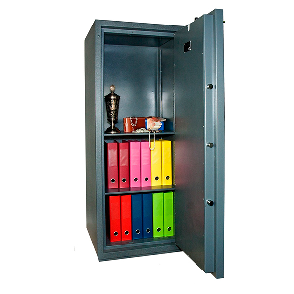 Внутреннее пространство имеет размеры: 1410 мм по высоте, 520 мм по ширине и 456 мм по глубине. Содержит 2 полки, которые позволят разделить, например, документы и ценности. Их можно легко снять, если будет необходимость хранить объемные предметы. Внутри сейфа можно легко поместить обычные папки с документами формата А4 в любом положении.