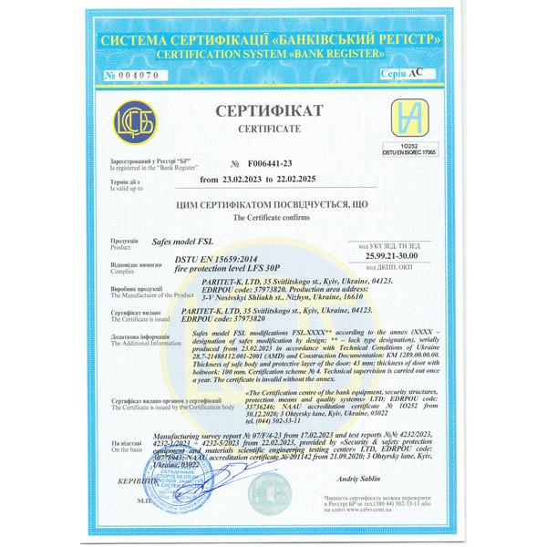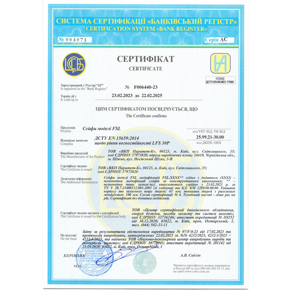 В комплекте следуют инструкция по эксплуатации и паспорт с серийным номером. Гарантия на конструкцию сейфа составляет 5 лет на замок 1 год.