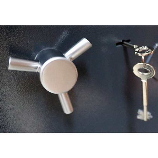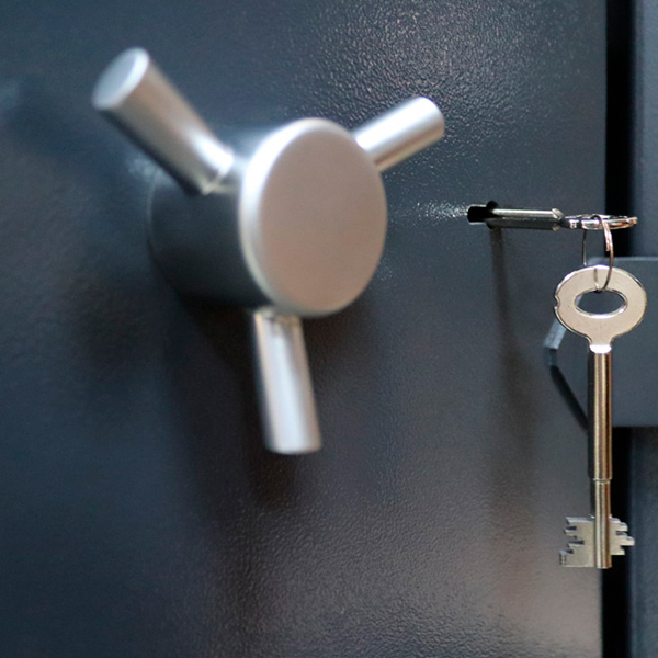 Наиболее распространенный и простой вариант закрытия/открытия сейфа. Оно осуществляется поворотом ключа. В вариантах, где есть ручка, ее нужно потянуть или повернуть. Обычно ключ не вынимается, пока Вы не закроют тайник полностью.