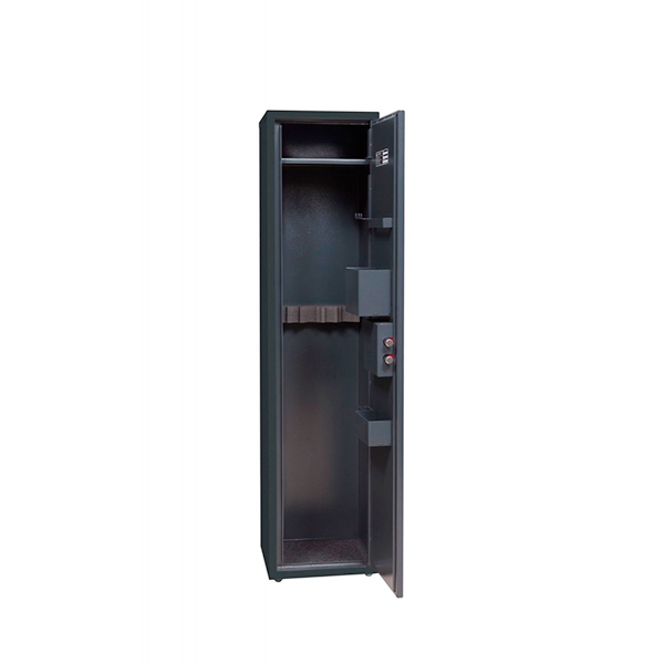 Внутреннее пространство имеет размеры: 1098 мм по высоте, 258 мм по ширине и 239 мм по глубине. Он включает передвижной магнитный ложемент под оружие. Сверху есть полка. На дверях присутствуют съемные переставляемые навесные элементы: карманы для магазинов под патроны и средства по уходу за оружием, держатели для шомполов.