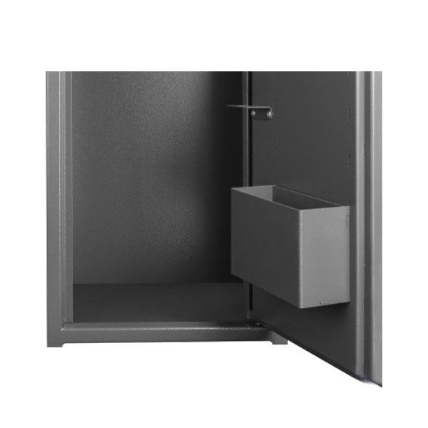 Корпус і двері сейфа виготовлені зі сталі. Їхня товщина складає 1,5 мм. В антрацитово-сірому кольорі сейф відмінно доповнить будь-яке сучасне приміщення та не буде виділятись.