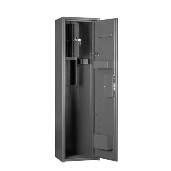 Загальні розміри сейфа: 1100 мм по висоті, 300 мм по ширині та 250 мм по глибині. Він включає в себе полицю, касове відділення та кишені для зберігання магазинів під патрони і засоби по догляду за рушницею. На дверях присутні навісні елементи кріплення, кишені для магазинів, тримачі для шомполів, а також планка для навішування зброї. Двері посиленні фальшпанеллю із дверної пластини і сталевого листа завтовшки 1 мм. Додатково сейф обладнаний окремим касовим відділом (трейзером), який можна зачинити замком Euro-lock під ключ з високим рівнем секрету – понад 2000 комбінацій. Його використовують для зберігання патронів. Для захисту від зламу двері товщиною 1,5 мм втоплені в середину, що підвищує надійність від вандальних методів зламу. Зачиняється ключовим сувальдним замком. Він керує 3-ма ригелями діаметром 14 мм.