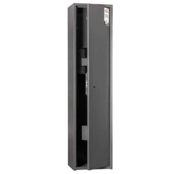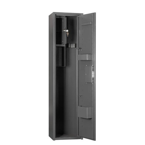 Загальні розміри сейфа: 1250 мм по висоті, 300 мм по ширині та 200 мм по глибині. Він включає в себе полицю, касове відділення та кишені для зберігання магазинів під патрони і засоби по догляду за рушницею. На дверях присутні навісні елементи кріплення, кишені для магазинів, тримачі для шомполів, а також планка для навішування зброї. Двері посиленні фальшпанеллю із дверної пластини і сталевого листа завтовшки 1 мм. Додатково сейф обладнаний окремим касовим відділом (трейзером), який можна зачинити замком Euro-lock під ключ з високим рівнем секрету – понад 2000 комбінацій. Його використовують для зберігання патронів. Для захисту від зламу двері товщиною 1,5 мм втоплені в середину, що підвищує надійність від вандальних методів зламу. Зачиняється ключовим сувальдним замком. Він керує 3-ма ригелями діаметром 14 мм.