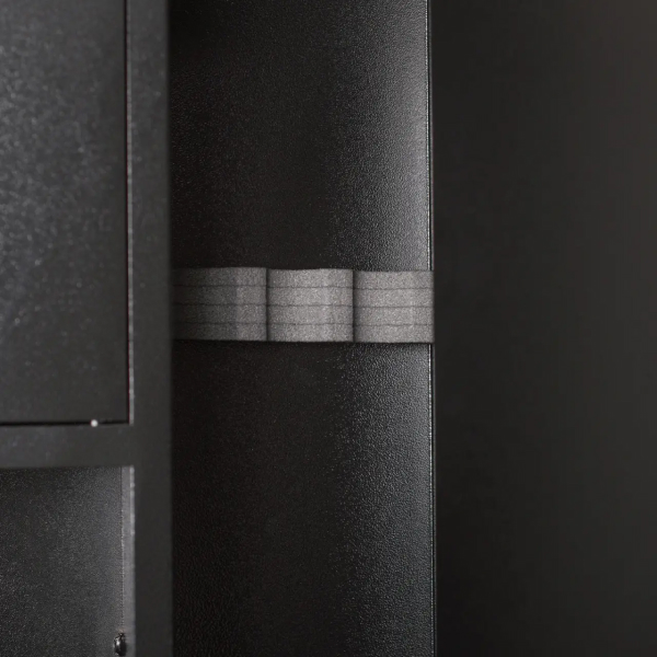 Корпус METALZAVOD ШОЛ-1370 изготовлен из стали. Ее толщина составляет 1 мм. Для дополнительной жесткости и надежности конструкция сейфа усилена профильной трубой по периметру дверного проема. Для защиты от взлома дверь толщиной 1,5 мм утоплена внутрь. Закрывается ключевым сувальдным замком ПроСам или Титан. Он управляет тремя ригелями диаметром 10 мм. Сейф покрыт специальной порошковой краской черного цвета. Она устойчива к царапинам и коррозии.