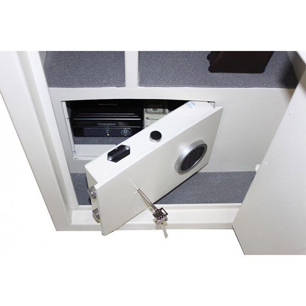 Корпус и двери сейфа изготовлены из металла толщиной 3 и 6 мм соответственно. Вместе с электронным кодовым замком M-LOCKS это создаст существенную преграду для злоумышленников. Запирание осуществляется ригельной системой трехстороннего действия. Толстые вращающиеся ригеля диаметром 25 мм обеспечат практическую защиту от возможности их перепиливания. Дополнительно со стороны петель имеются антисрезы. В кремовом цвете сейф отлично дополнит любое современное помещение.