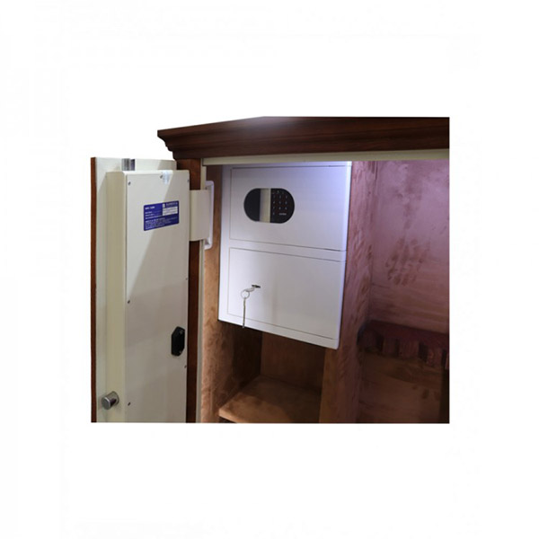 Корпус и двери сейфа изготовлены из металла. Толщина защитного слоя стенок составляет 3 мм. Стальные легированные пластины защитят от высверливания и выбивания замков и ригелей. Особенностью этой модели является антивзломная конструкция «зацеп». Благодаря ей у злоумышленников не будет возможности открыть двери острым предметом или отверткой. Вместе с электронным кодовым замком M-LOCKS это создаст существенную преграду для них. Запирание осуществляется ригельной системой. Толстые вращающиеся ригеля диаметром 25 мм обеспечат практическую защиту от возможности их перепиливания. В цвете натурального дерева сейф непременно станет украшением любого помещения.