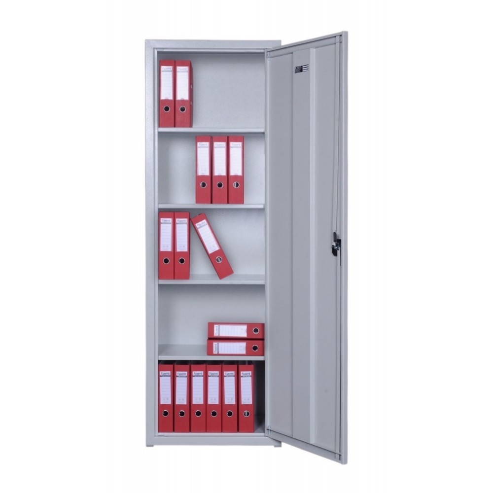 Внутреннее пространство имеет размеры: 1748 мм по высоте, 438 мм по ширине и 368 мм по глубине. Главной его фишкой является емкость. Для удобства распределения общего объема предусмотрены 4 полки. Их можно легко снять, если будет необходимость поместить более объемные предметы. Мы же советуем использовать данную модель в основном для хранения папок с документами формата А4, папок-регистраторов и других офисных документов.