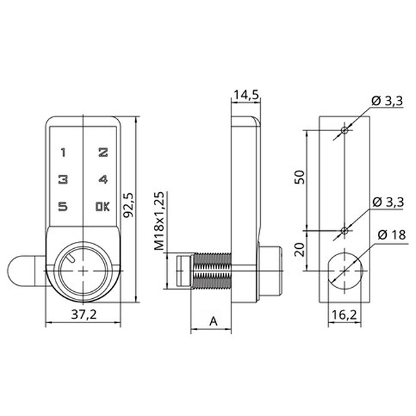 Описание Замок мебельный RZ M-1603BK-30 электронный кодовый