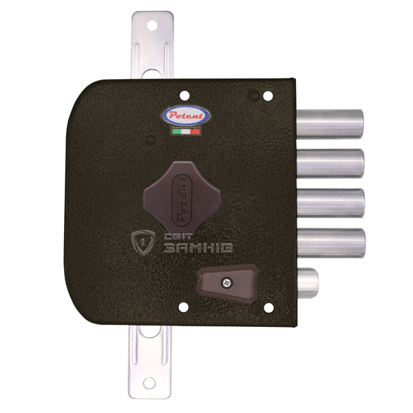 POTENT N515 – это 4-ригельный итальянский замок. Устанавливается накладным способом на дверное полотно. Используется на входной деревянной и металлической двери квартиры или дома. Также его часто выбирают для монтажа в гаражах или складских помещениях, где установить врезной замок нет возможности или это нецелесообразно.